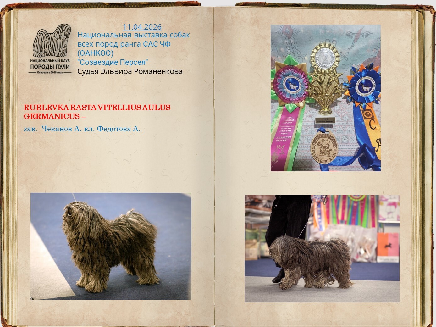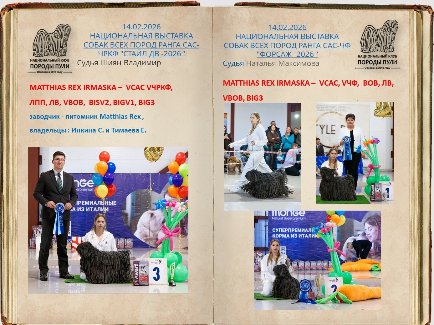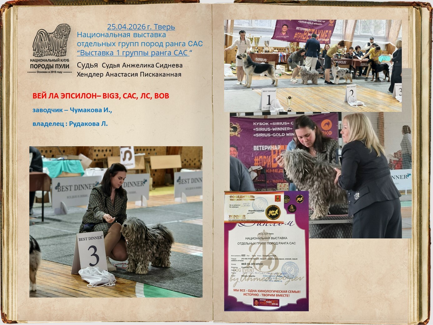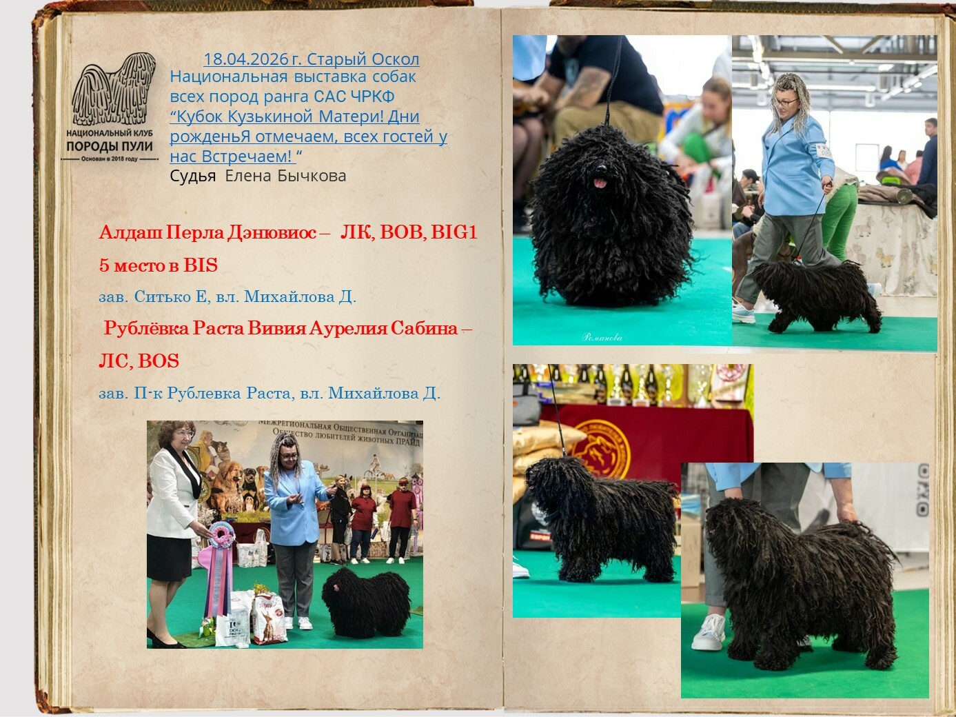 Уважаемые владельцы пули, все вы знаете о нашей базе пули, которую мы стремимся всячески пополнять и развивать. Для более презентабельных представлений вашего пули на странице базы, присылайте на почту НКП nkp.puli@yandex.ru фото в стойках, дипломы достижений на выставках, титулы и тесты. Эти данные будут вносится в базу при подтверждающих документах.