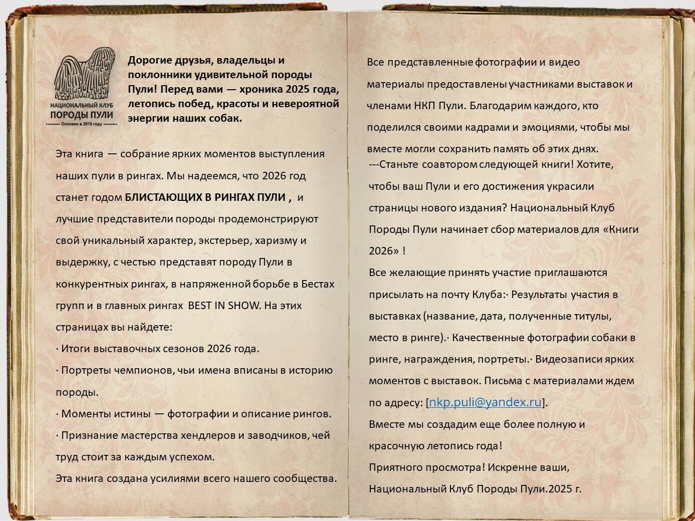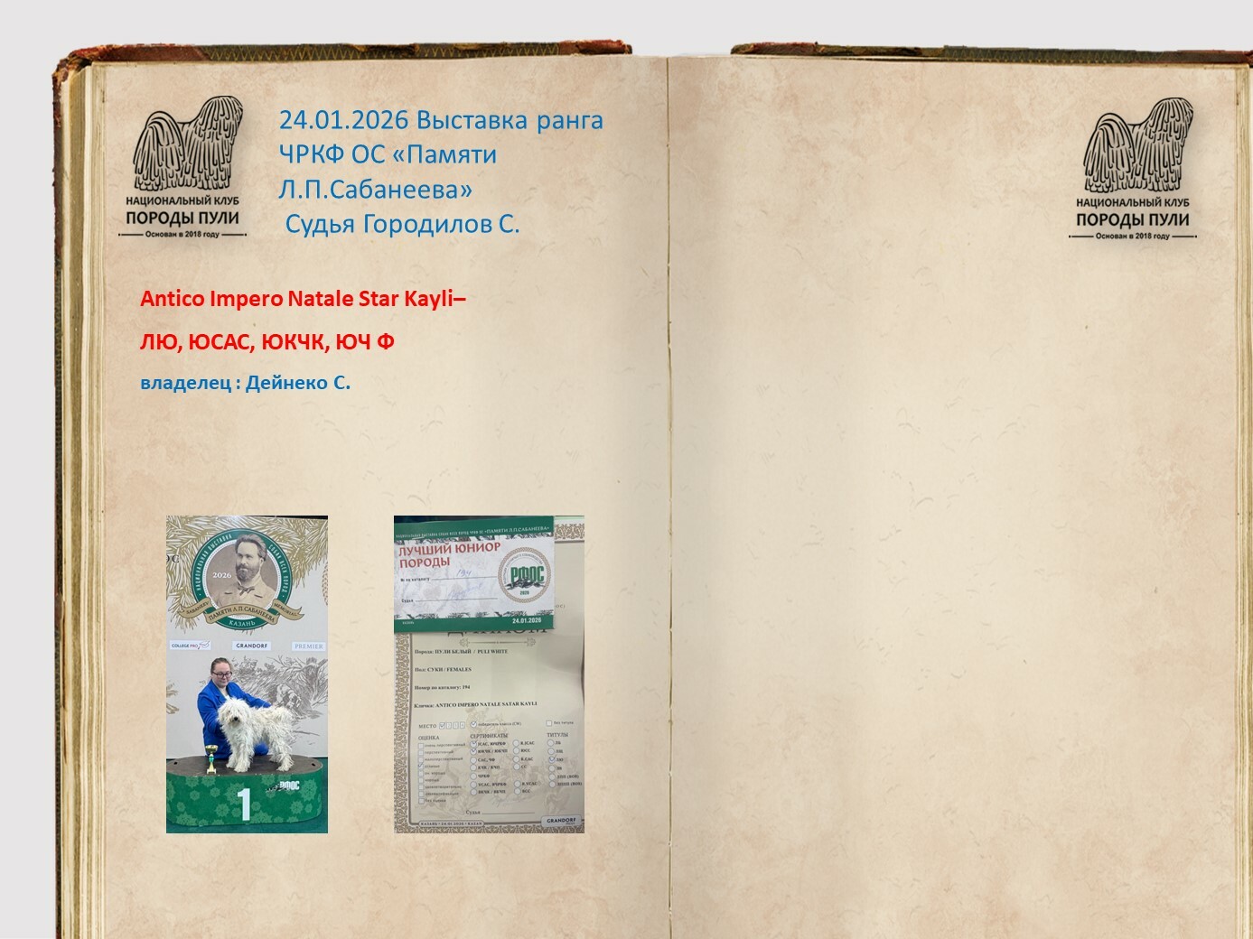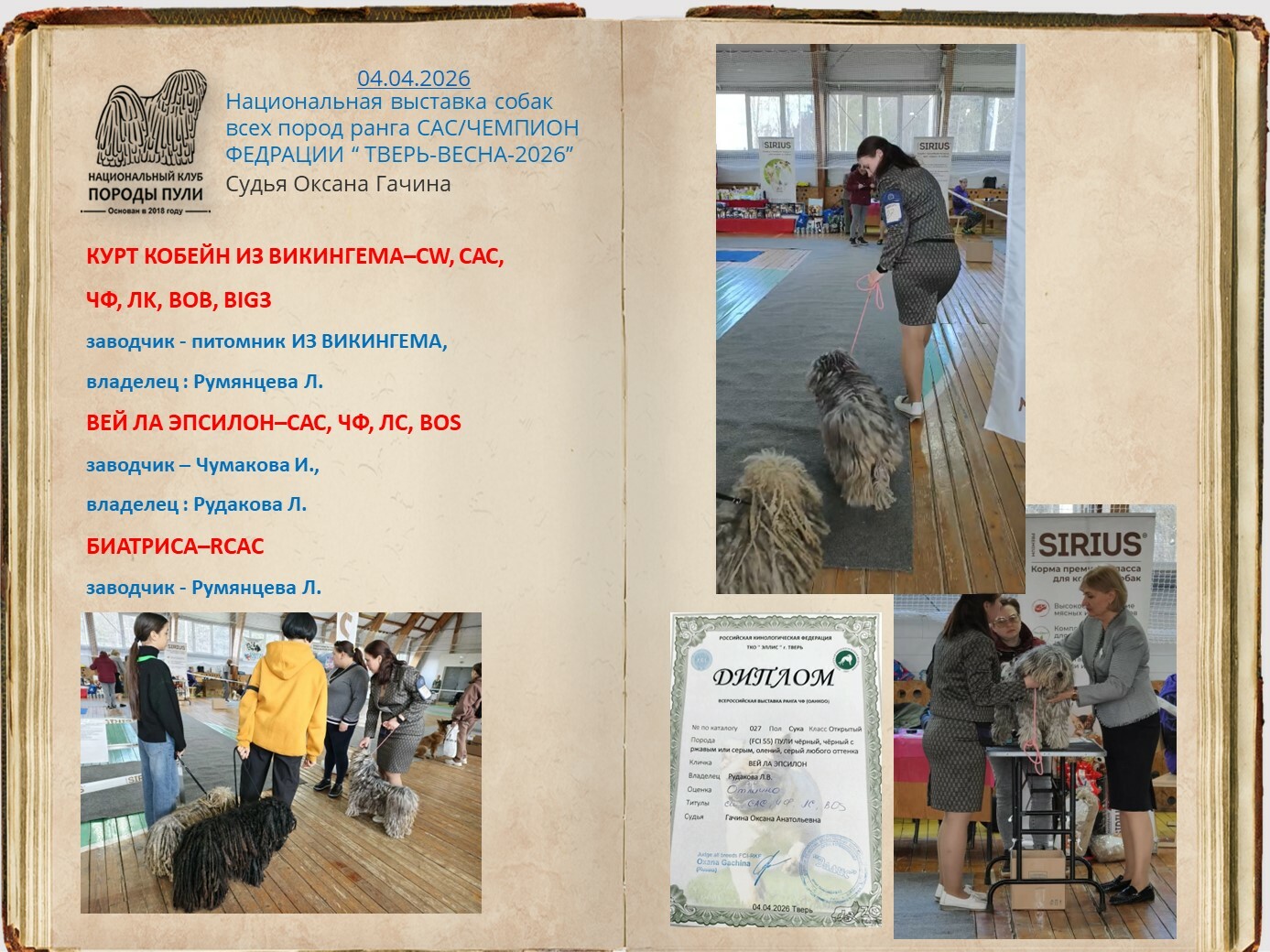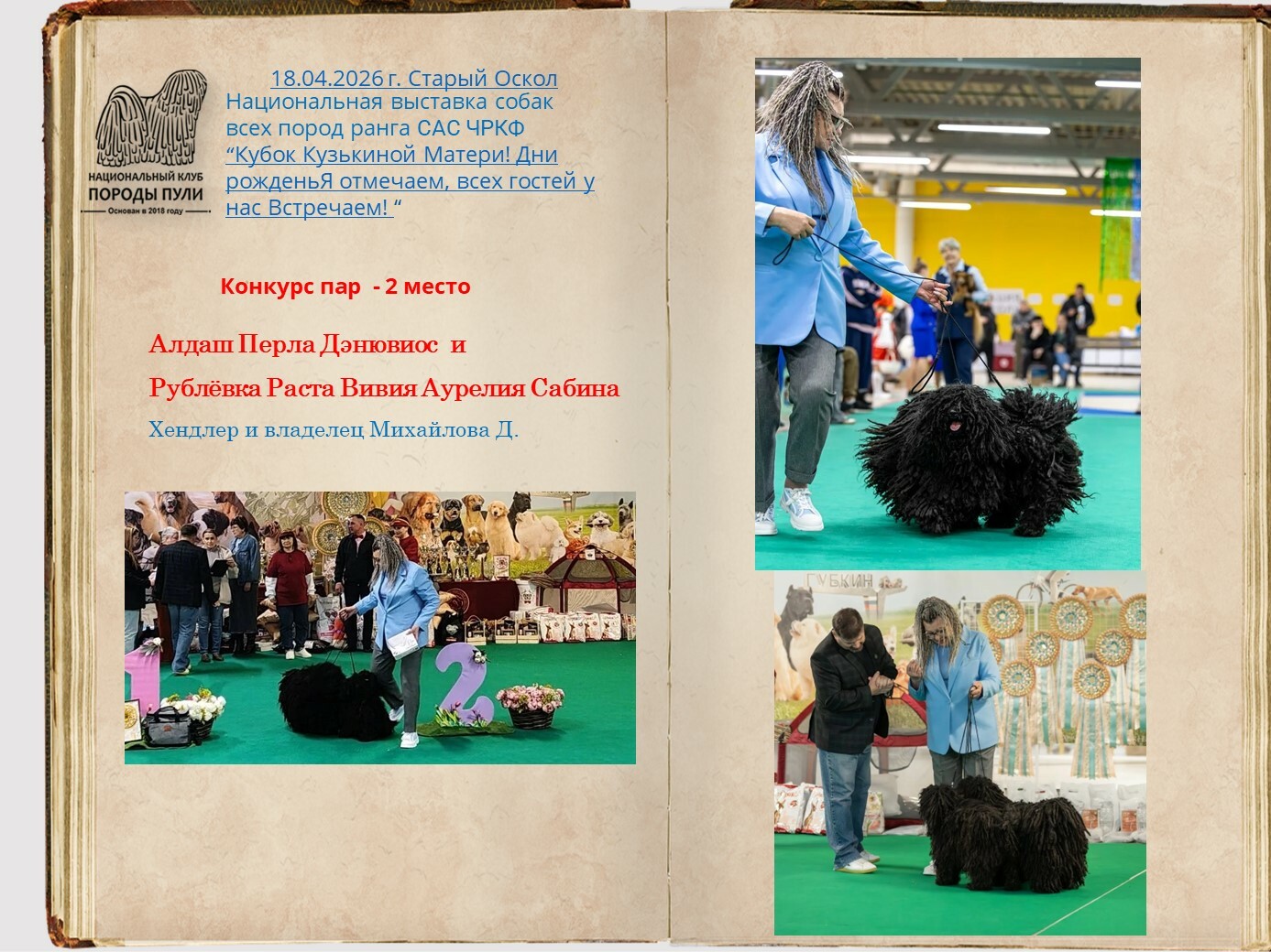 Уважаемые владельцы пули, все вы знаете о нашей базе пули, которую мы стремимся всячески пополнять и развивать. Для более презентабельных представлений вашего пули на странице базы, присылайте на почту НКП nkp.puli@yandex.ru фото в стойках, дипломы достижений на выставках, титулы и тесты. Эти данные будут вносится в базу при подтверждающих документах.